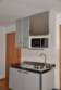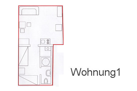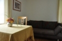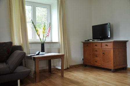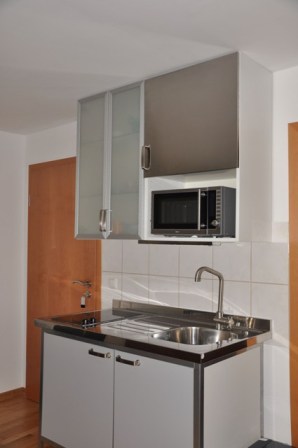 In the living room there is a sofa bed for two persons. Satellite television, wireless Internet access and telephone are available. The kitchenette is equipped with an electric kitchen stove with two cooktops, fridge and microwave with grill. The bedroom is equipped with two single beds and a big cupboard with sliding doors. Bathroom with shower (glass cabin), wash basin and lavatory. |
