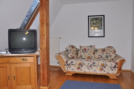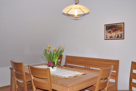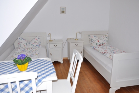 In the living room there is a big settee and a comfortable sofa in the corner for reading and relaxing. The parent’s bedroom is equipped with solid wooden beds and cupboard. The children’s bedroom is equipped with two single beds from the “good old days” and a big, white cupboard. In the kitchen, there is an electric stove with four cooktops, oven, dishwasher, fridge and microwave. Bathroom with shower (glass cabin), wash basin and lavatory. Satellite television, wireless Internet access and own telephone. |