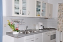 Die Küchenzeile hat einen Vierplatten-Herd mit Backrohr, Kühlschrank und Spülmaschine, sowie einen Eßplatz für 6 Personen.