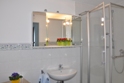 Bad mit Dusche (Echtglaskabine), WC und Waschbecken,