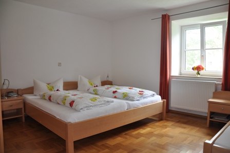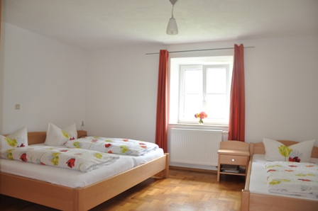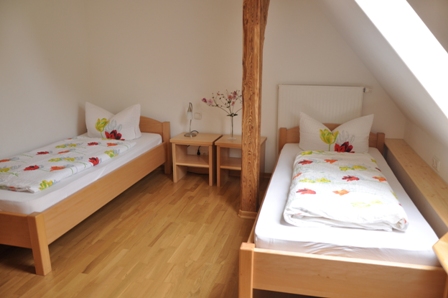Das Elternschlafzimmer hat 3 Betten und einen großen Kleiderschrank. Im Kinderzimmer, das über eine steile Treppe vom Elternschlafzimmer aus erreichbar ist